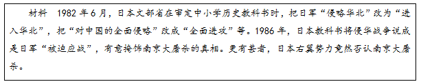 教师出示材料,提出问题:面对日本侵略的事实,日本右翼势力极力否认,其否认侵略行为的目的是什么?作为一名中国人,你对这种行为的看法是什么?